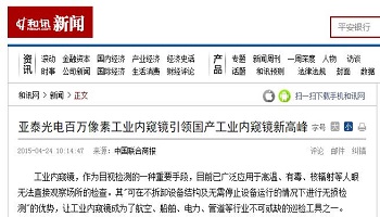 和訊網:亞泰光電工業(yè)內窺鏡引領國產工業(yè)新高峰