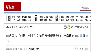 和訊網:響應國家“創(chuàng)新、創(chuàng)業(yè)”號角百萬創(chuàng)新基金助力產學研合作