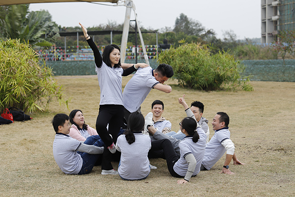 12月25日早8:00公司所有同事乘坐旅游大巴經過一個半小時的行程后到達位于惠州博羅的歐野奇境營地,這是一片福田福地,背靠羅浮山脈,營地內數十畝草場,百畝園林,魚塘和水庫如明珠鑲嵌,無需修飾、渾然天成,來到營地稍作休息合影拍照后,此次戶外拓展對接教練告訴我們,這次的年會是一次比較有意義、有創新的團隊拓展活動,在此次拓展培訓中,所有參訓隊員被分為八個小組,各個小組的成員經過一番頭腦風暴,一個個有趣的團隊名稱,一個個響亮的團隊口號,一個個富有特點的團隊POSS被隊員們鮮明地、極富創意的表現出來?!凹t火隊”、“超越隊”、“野狼隊”等團隊的精彩表現,整個活動中穿插的一個個拓展小游戲,在輕松愉快的氛圍中,放松心情,熔練團隊,讓大家在每個游戲里面感覺到每個人的責任和團隊凝聚力。