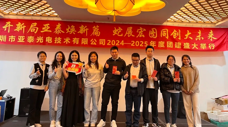 12月13日,深圳亞泰光電迎來了公司2024—2025年度的團(tuán)建盛典。在這個(gè)充滿希望與挑戰(zhàn)的新起點(diǎn)上,全體員工齊聚一堂,以“龍開新局,亞泰煥新篇;蛇展宏圖,同創(chuàng)大未來”為主題,共同開啟了一段難忘的旅程。會(huì)場(chǎng)內(nèi)洋溢著對(duì)過去一年成就的自豪和對(duì)未來發(fā)展的期待,每一個(gè)微笑背后都蘊(yùn)含著對(duì)公司未來的堅(jiān)定信心。