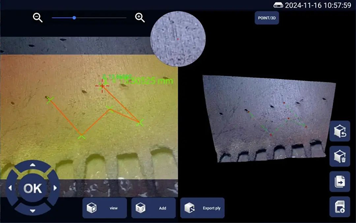 亞泰光電三維內(nèi)窺鏡的核心突破在于高精度三維建模與實時測量。其搭載的雙目立體成像技術(shù),可生成3D點云圖、深度圖和剖面圖,最小測量精度達到0.01mm,遠超傳統(tǒng)二維檢測的局限。