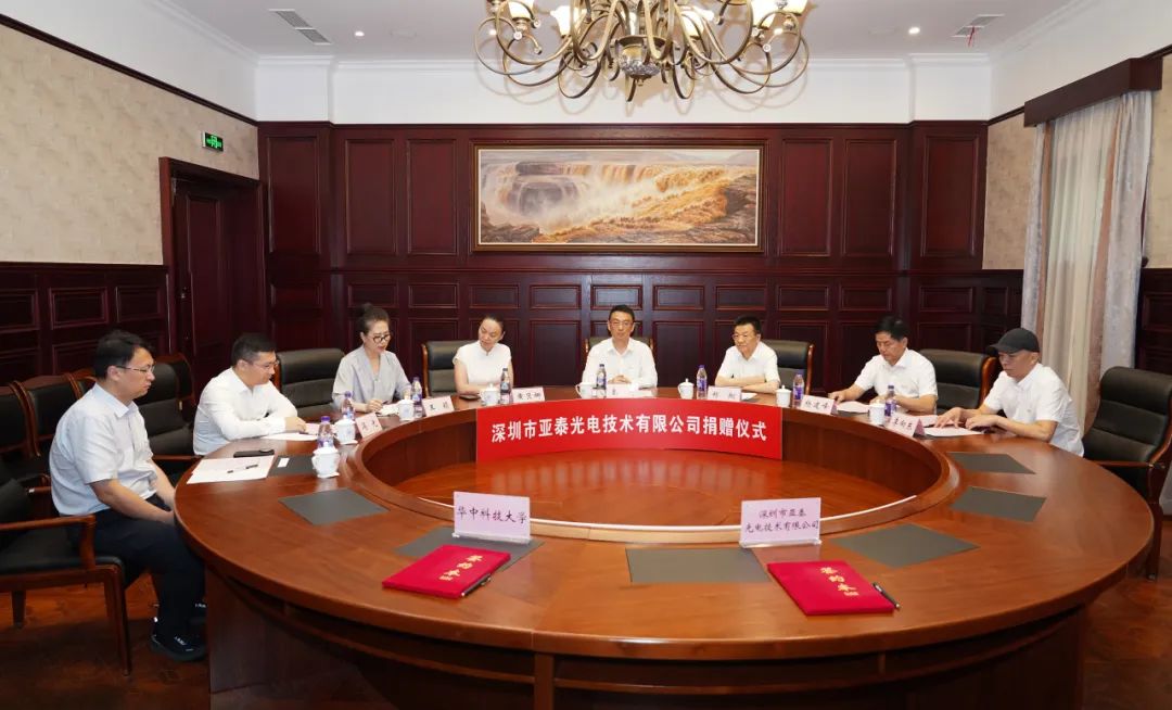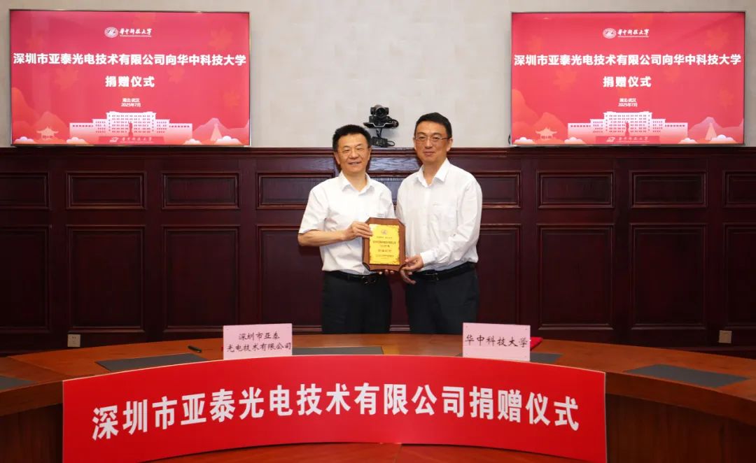 2025年7月17日,在華中科技大學梧桐語論道廳內,一場意義非凡的校企合作拉開了帷幕。作為國家級專精特新“小巨人”企業,深圳市亞泰光電技術有限公司向其母校——華中科技大學慷慨捐贈了100萬元人民幣設立“亞泰光電獎教獎學金”,旨在支持教育事業的發展,推動科技人才的培養。此次捐贈不僅是對母校深厚情感的體現,更是未來校企合作邁向新高度的重要里程碑。