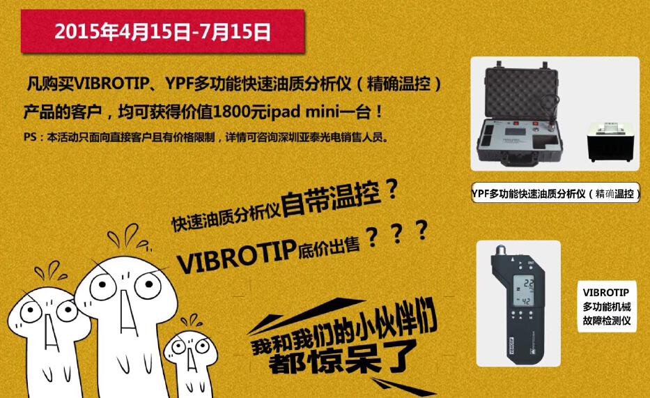 為慶祝亞泰光電自主研發的帶“精確溫控”功能快速油質分析儀成功問世, 自2015年4月15日起,特進行為期三個月的“以舊換新、免費試用”活動。